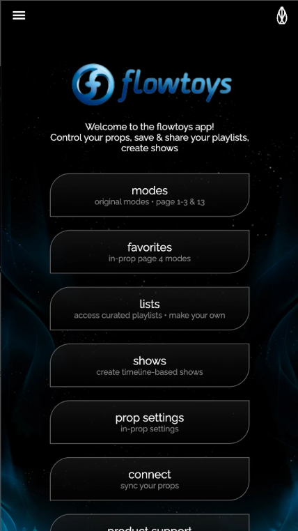 De Flowtoys Connect-app is een krachtige mobiele applicatie waarmee je al je Flowtoys Connect-props kunt bedienen. Op dit moment ondersteunt de app alle Capsule 2-lights en Vision-props.