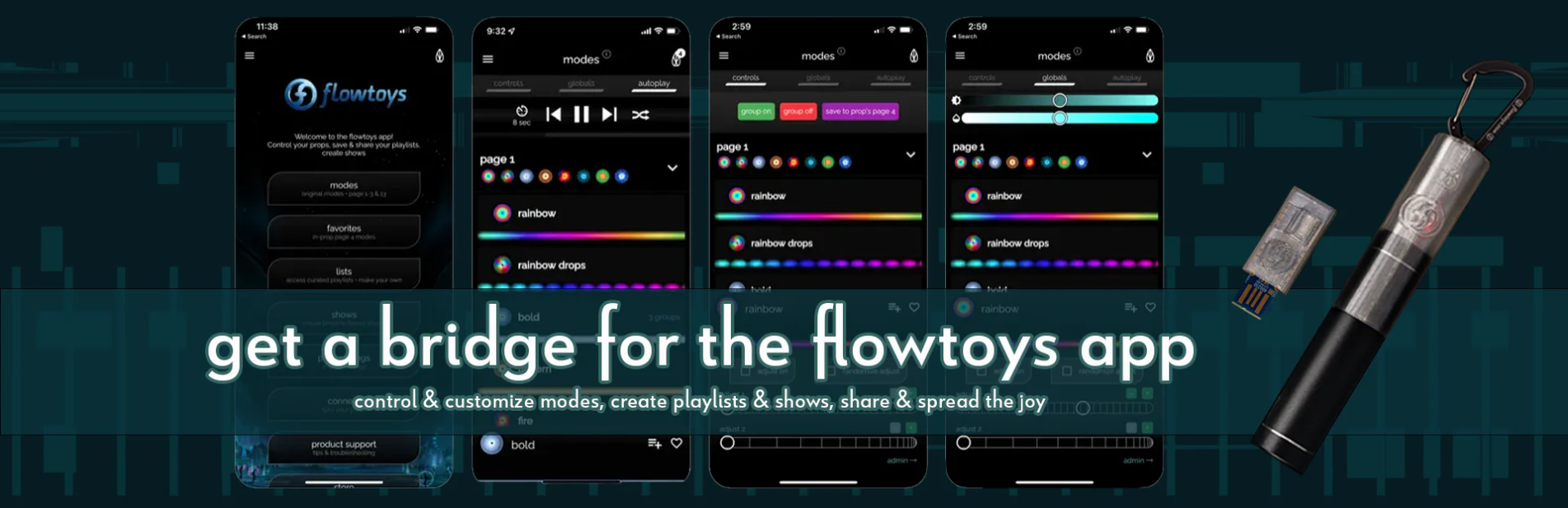 De Flowtoys Connect-app is gratis te downloaden in de Apple App Store en de Google Play Store.