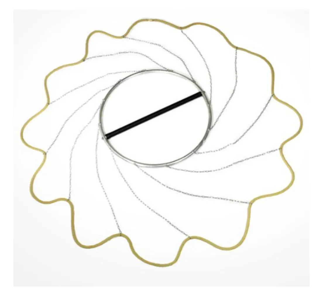 De “stralen” zijn onzichtbaar en bestaan uit kettingen die aan de aluminium ring zijn bevestigd. Alleen de buitenring is met Kevlar omwikkeld en brandt. Dit zorgt voor een meer statisch visueel effect, waarbij de buitenring tijdens het spinnen relatief stil lijkt te staan.