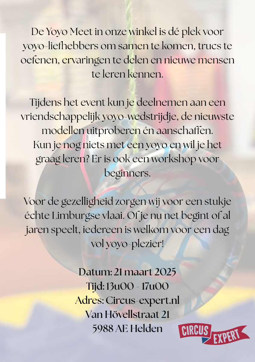 Wij heten u van harte welkom op de Circusdag 2026 bij Circus-Expert! Tijdens onze open dag nemen we u mee in de wereld van het circus en geven we een unieke kijk achter de schermen van onze winkel en ons magazijn.