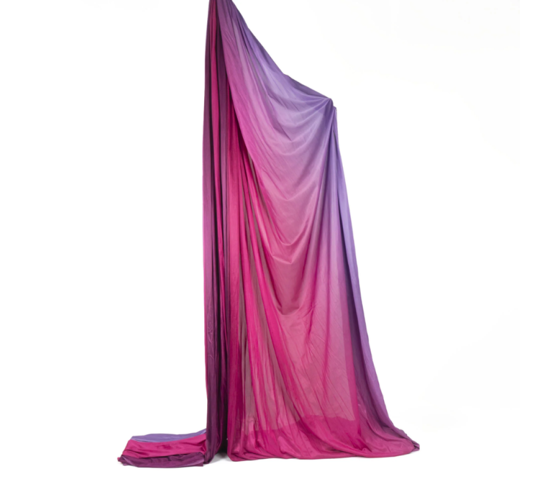 Deze prachtige stoffen zijn kettinggebreid (tricot), 100% nylon aerial silk (ook bekend als Aerial silk, tissus of doeken). Ze hebben weinig rek en zijn 280 cm breed. Deze doek wordt geleverd met een herbruikbaar zakje om je zijde in op te bergen.